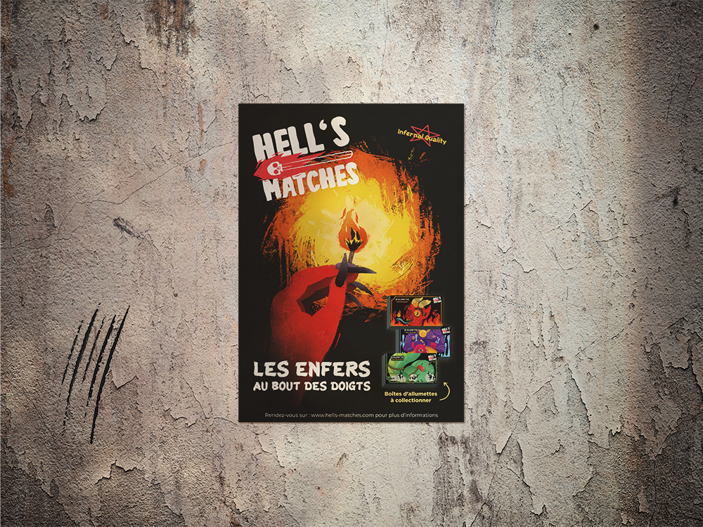 Nous avions pour mission de remettre au goût du jour des allumettes en créant une série de trois boîtes d’allumettes, une affiche et le logo de la marque.