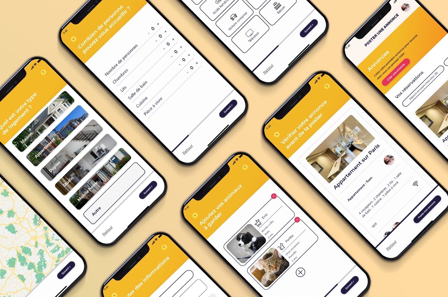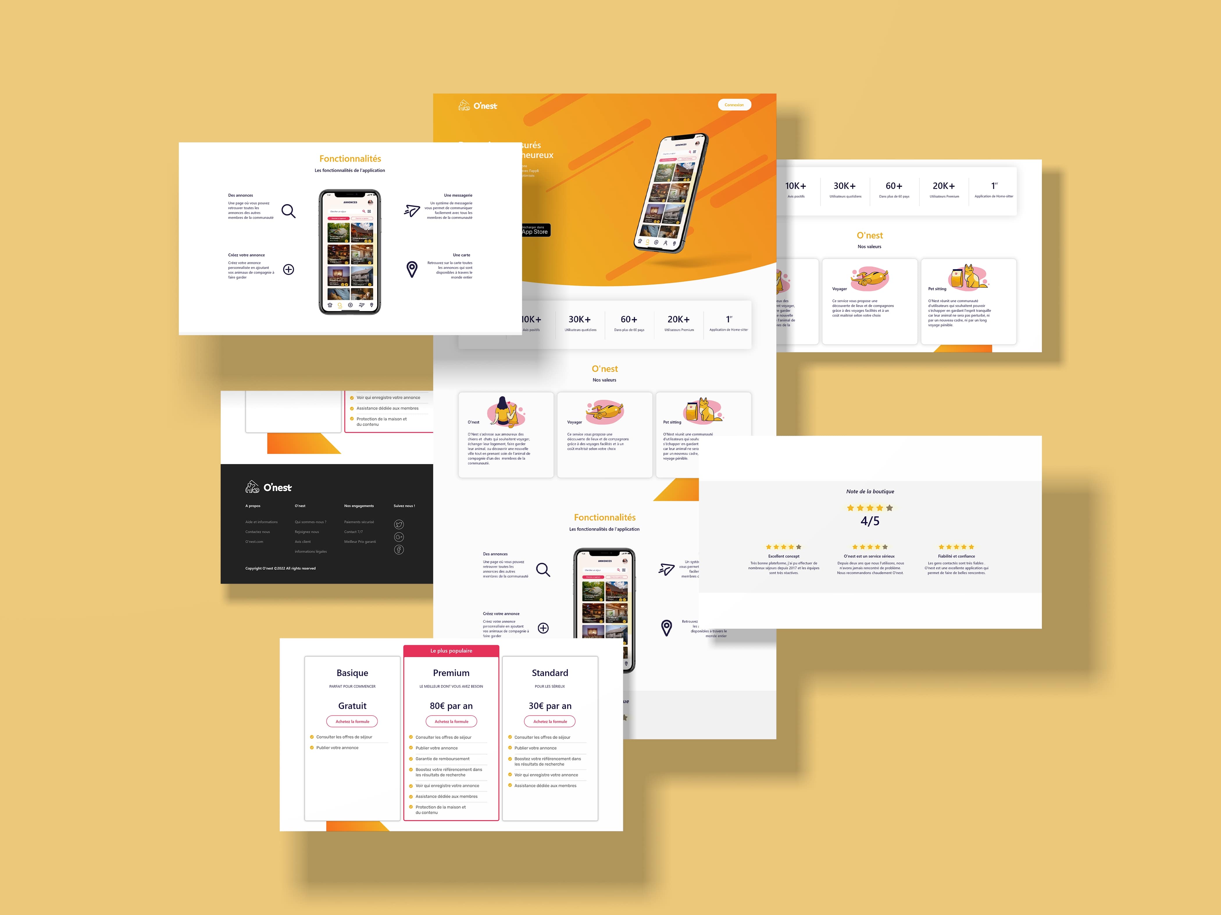 O'Nest est un service similaire à Air Bnb, où l'hôte s'occupe de l'animal du propriétaire en échange de la location. Charte graphique, design de l'application, prototypage, landing page.