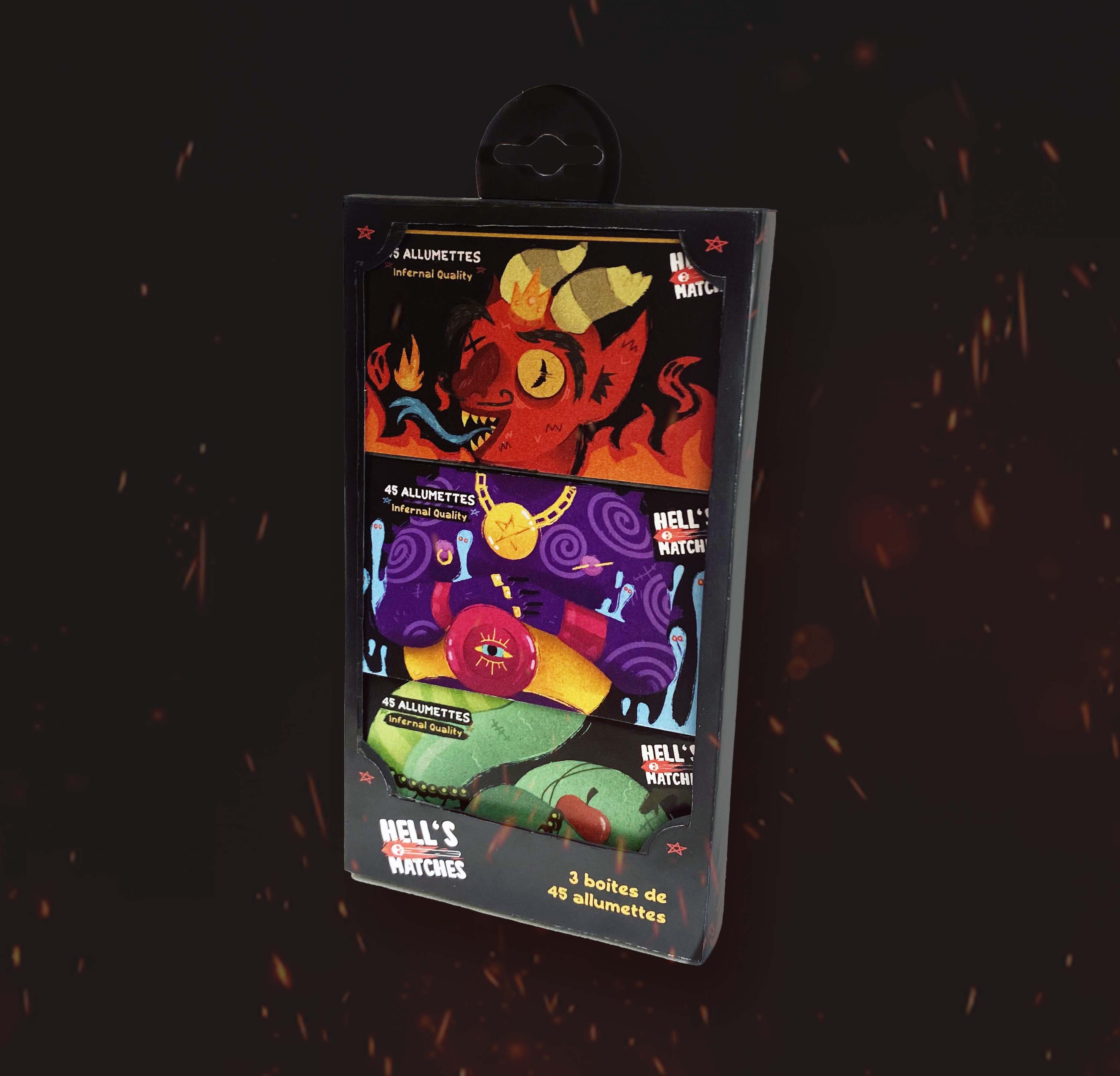 Nous avions pour mission de remettre au goût du jour des allumettes en créant une série de trois boîtes d’allumettes, une affiche et le logo de la marque.