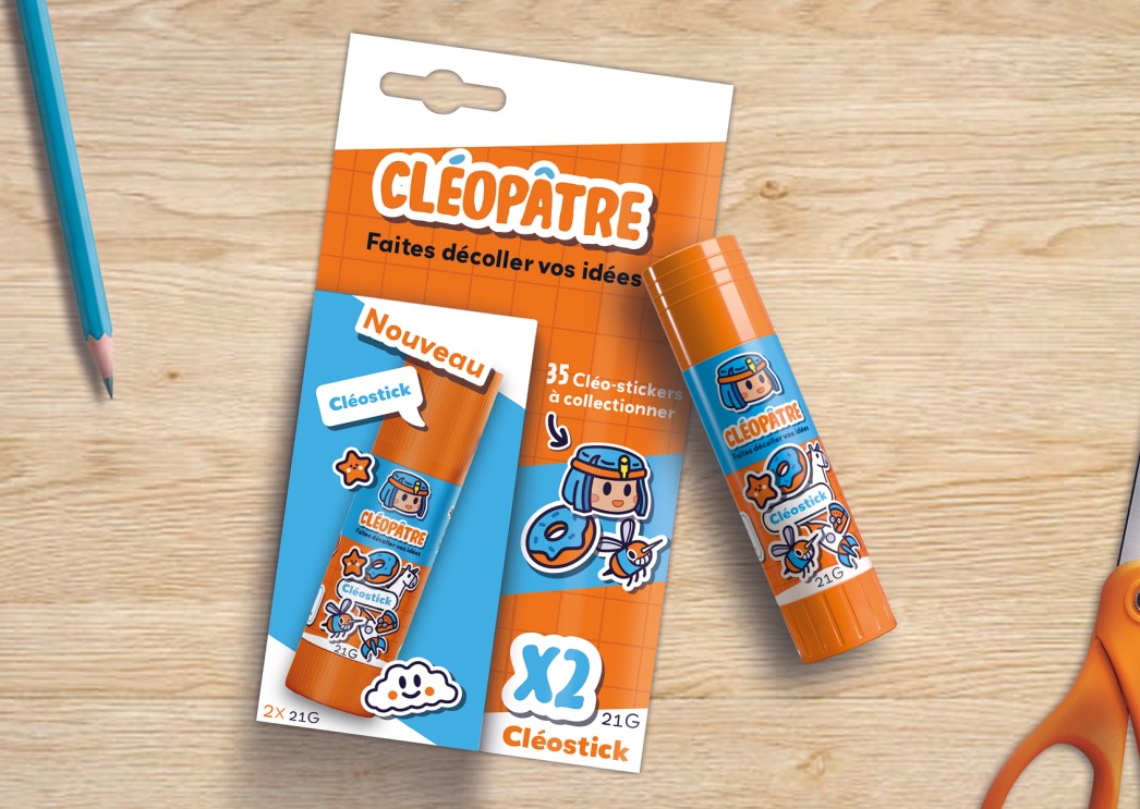 L’entreprise Cléopâtre souhaite rafraîchir son image de marque en retravaillant son identité visuelle et en lançant un nouveau stick de colle.