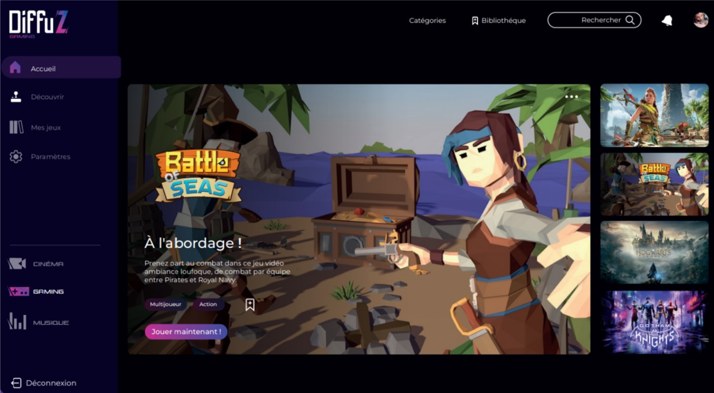 Création de 3 plateformes de streaming (cinéma, jeux vidéo, musique) avec 3 key visuals associés ainsi qu'une campagne publicitaire.